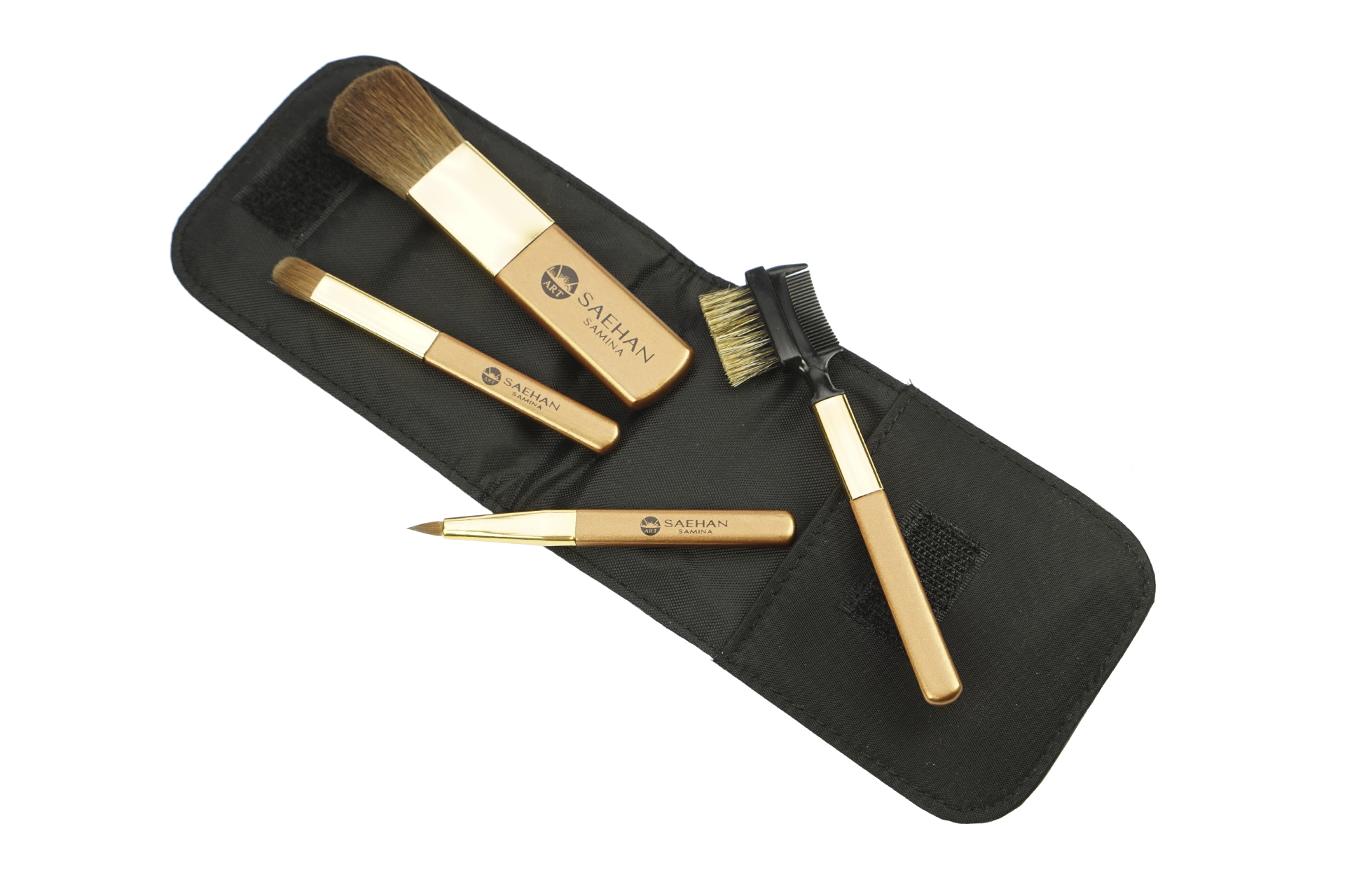 Pinsel-Set 4-tlg. Naturhaar mit Holzgriff im Etui mit Klettverschluss