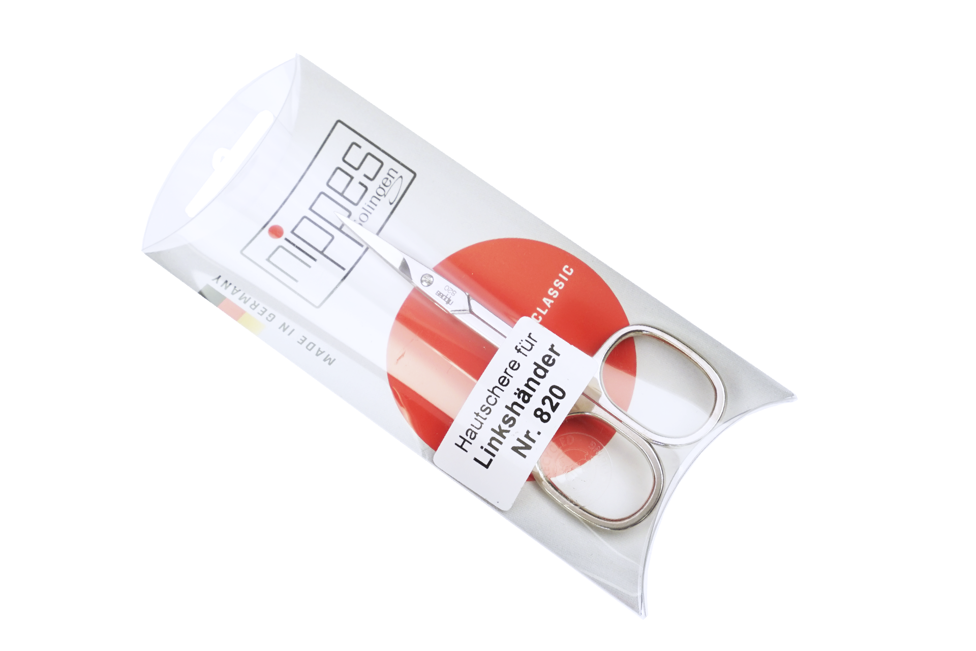 Unsere Klassiker für Linkshänder. Egal, ob Pediküre oder Maniküre – nicht selten vergisst man die kleinen Details wie das Entfernen der überflüssigen Nagelhaut. Mit dieser modernen vernickelten Hautschere und ihrer gebogener Spitze ist diese Arbeit schnell und sauber erledigt. Die Schere kommt mit Schließhalm, gehärteter Spitze und einer Länge von 90 mm.