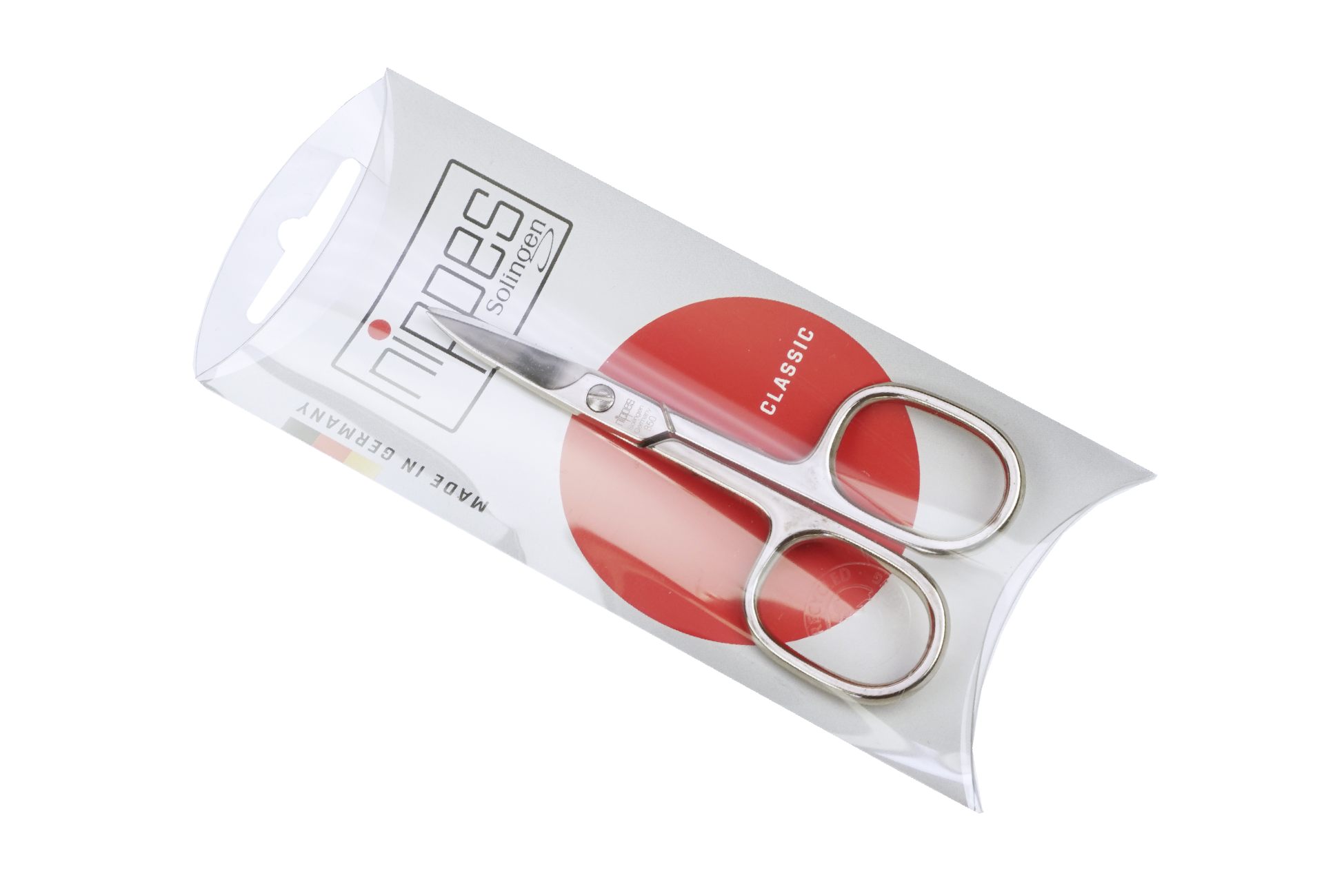 Diese Nagelschere aus geschmiedetem Stahl mit Schließhalm und gebogener Spitze ist das essentielle Werkzeug für die perfekte Maniküre. Länge: 90 mm. Gefertigt aus spezial Scherenstahl, vernickelt