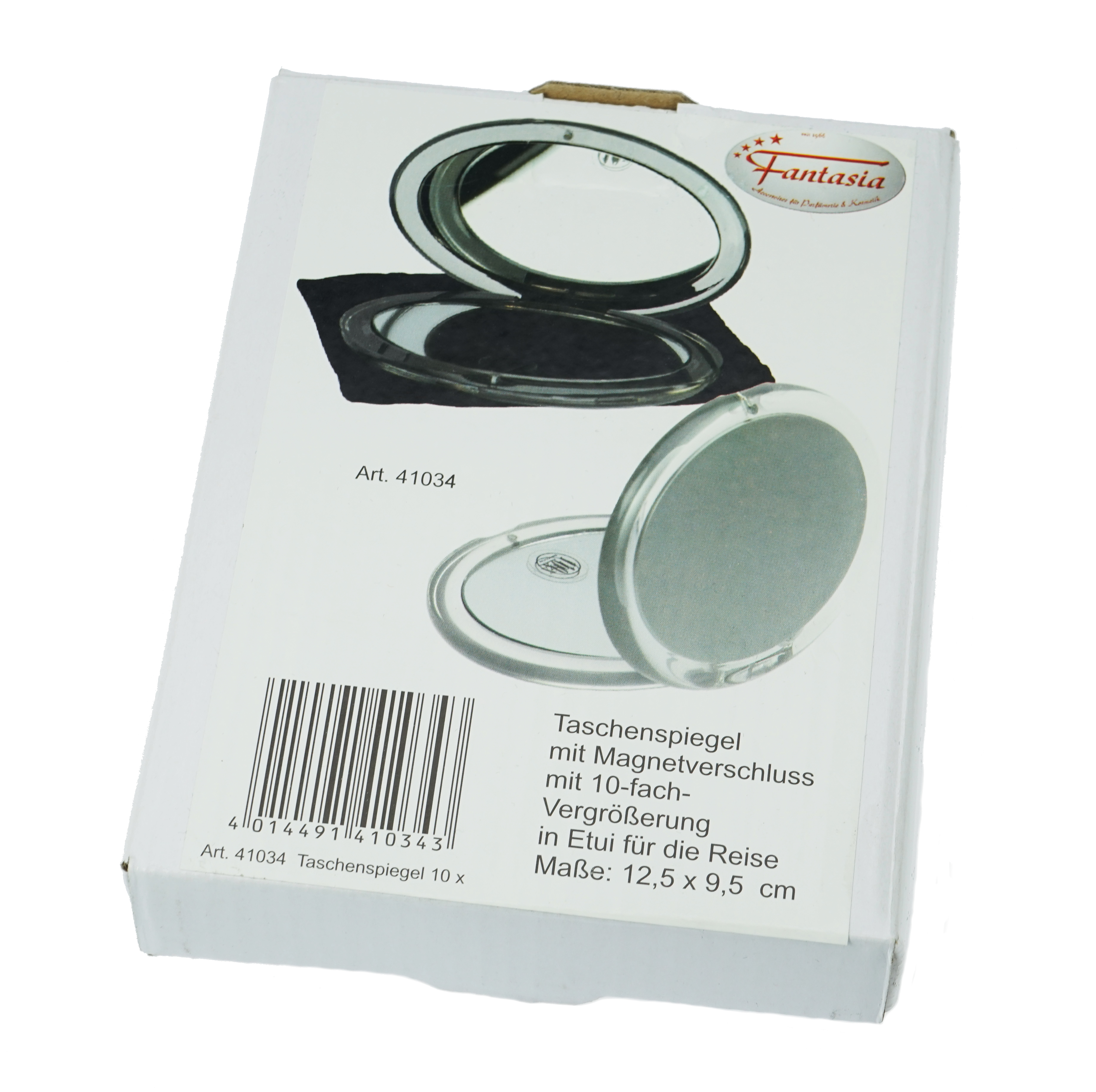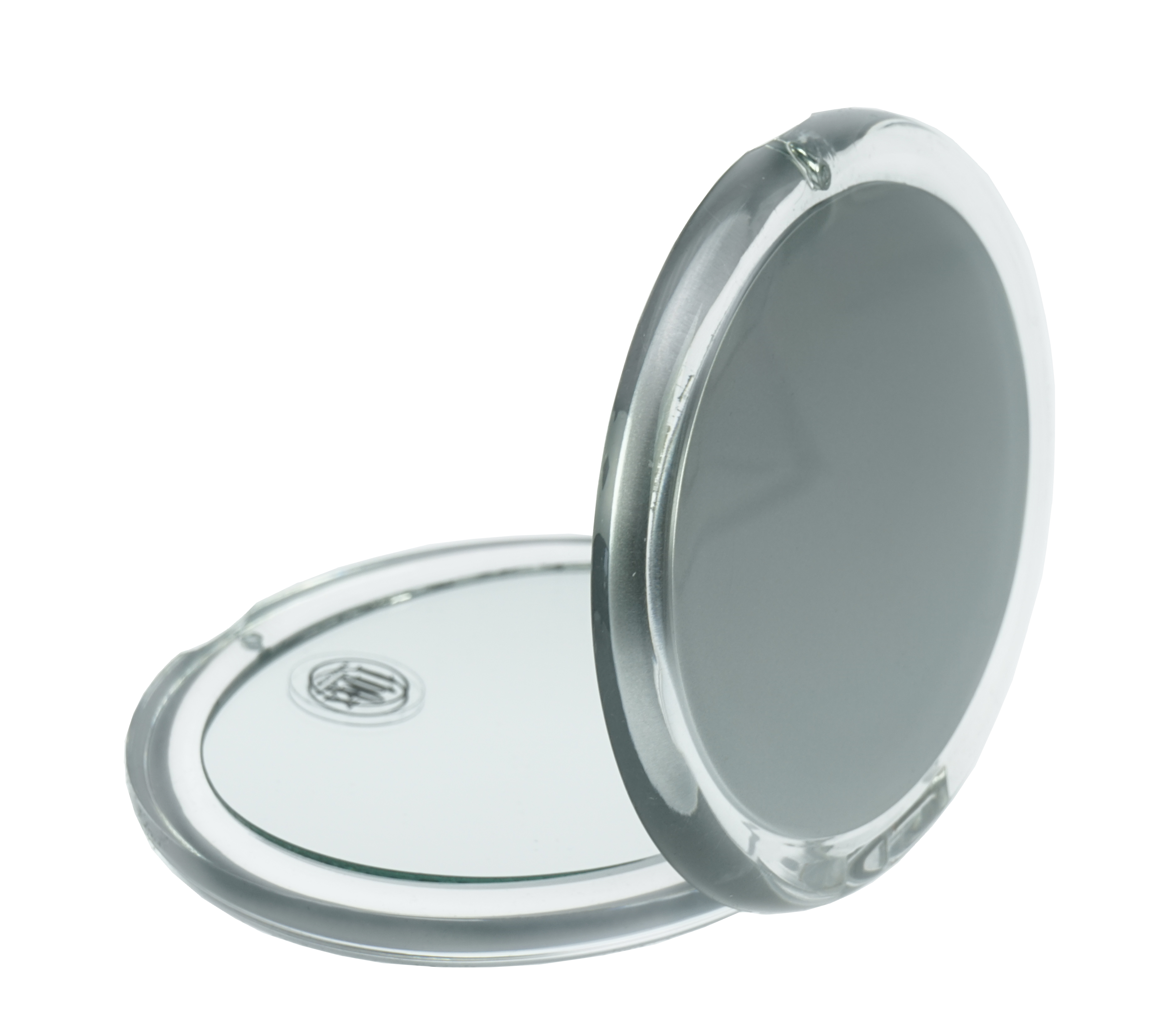 Der praktische Klappspiegel ist mit zwei Spiegelseiten ausgestattet - eine Seite mit 10-facher Vergrösserung und eine mit normaler Vergrösserung.