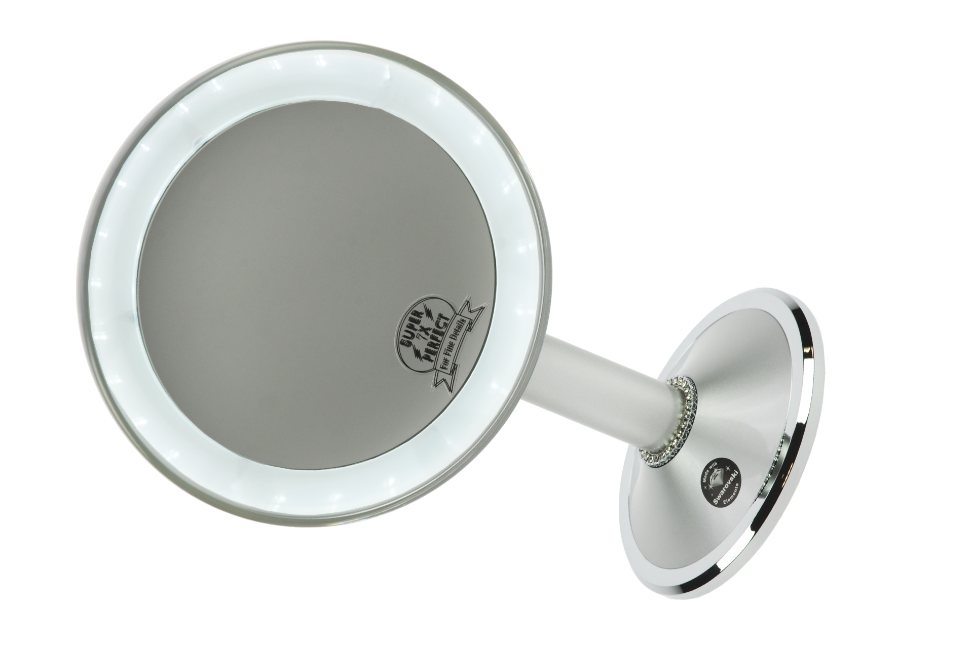 » » » Standspiegel silberfarben mit LED Beleuchtung, 7-fach Vergrösserung, mit Swarovski Elementen, Ø 17,5 cm