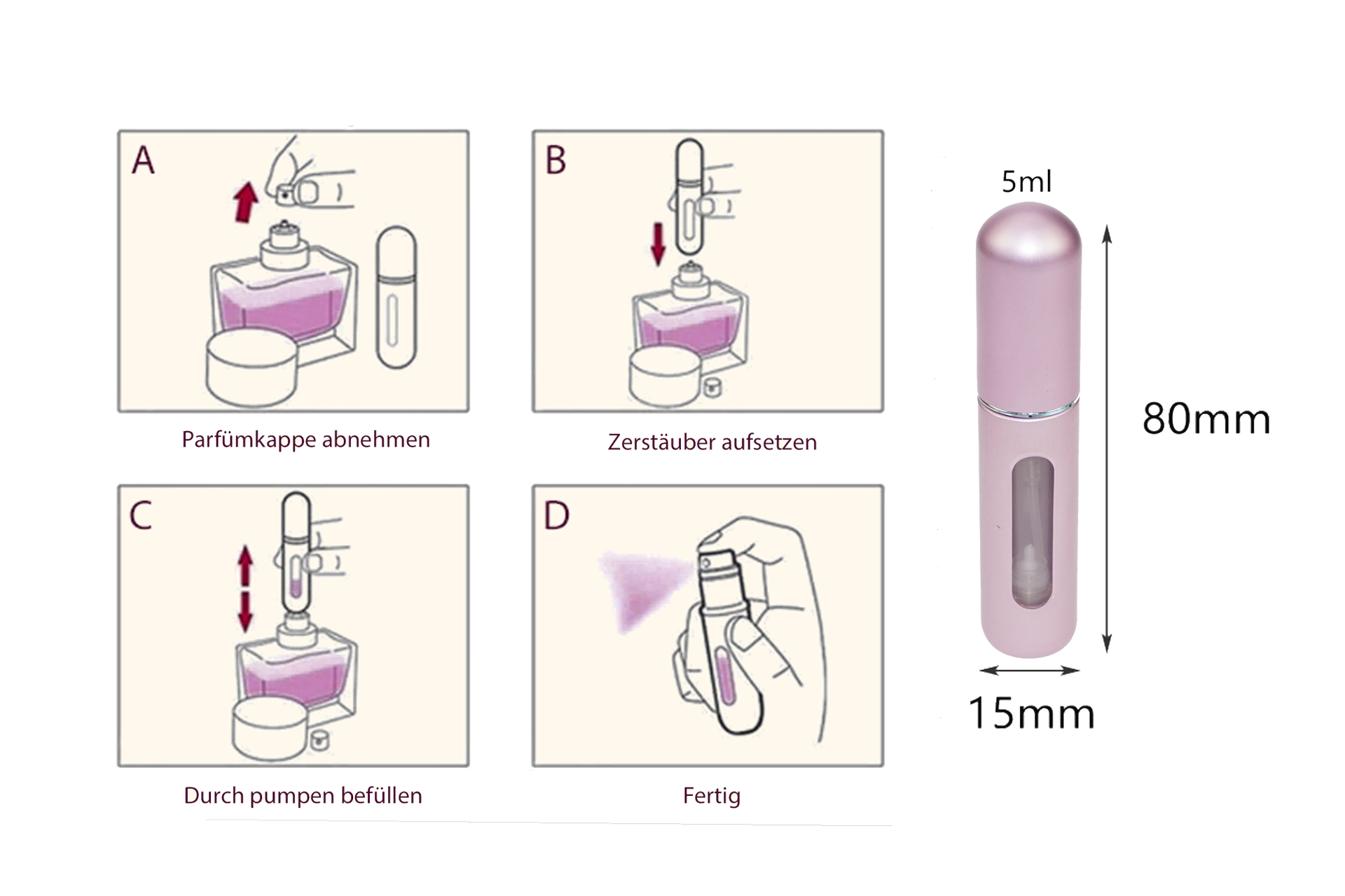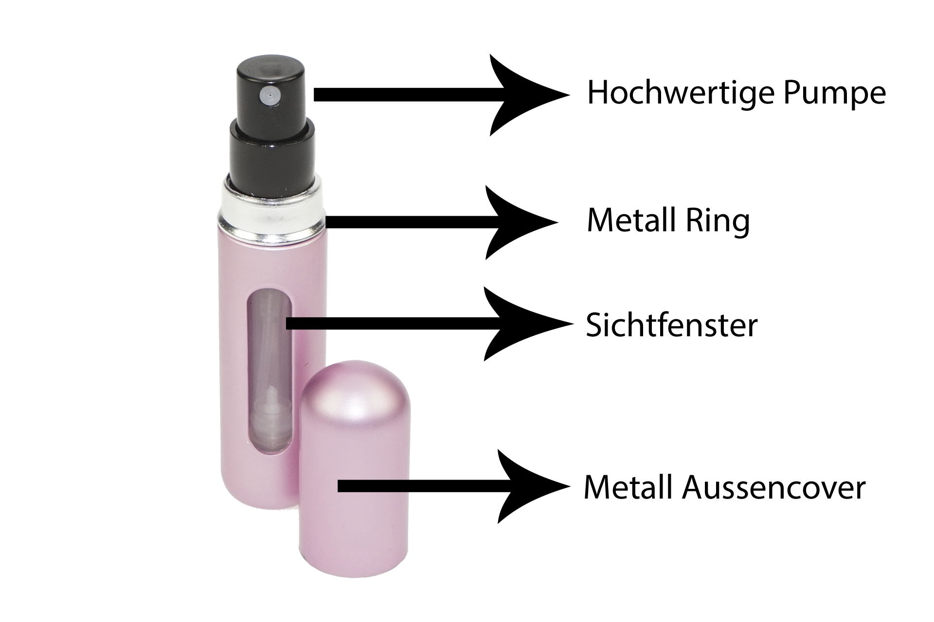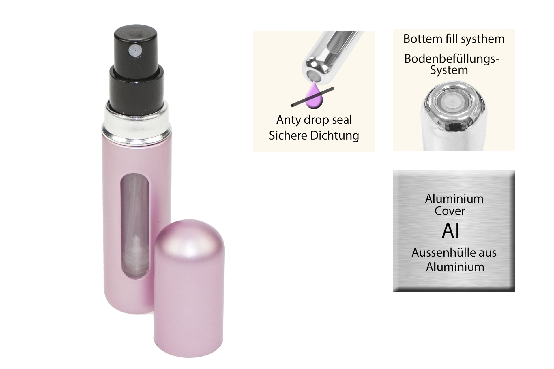 Taschenzerstäuber, matt pink für 5 ml, mit Füllautomatik und Sichtfenster
