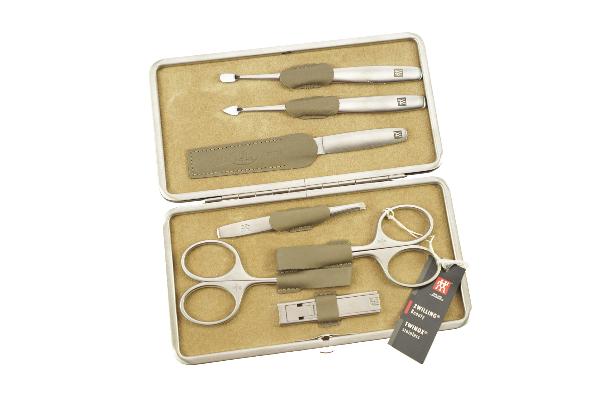 With the functional, 7-piece manicure case, you have everything you need for well-groomed, beautiful fingernails at hand. Functional precision instruments made of rust-free and polished stainless steel in an elegant frame case. The practical manicure set in an unusual design is equipped with five corrosion-resistant tools: cuticle scissors, nail scissors, stainless steel nail file, slanted tweezers, cuticle pusher, nail cleaner and a nail nipper. The instruments are neatly stored in the high-quality genuine leather case and are always within easy reach.