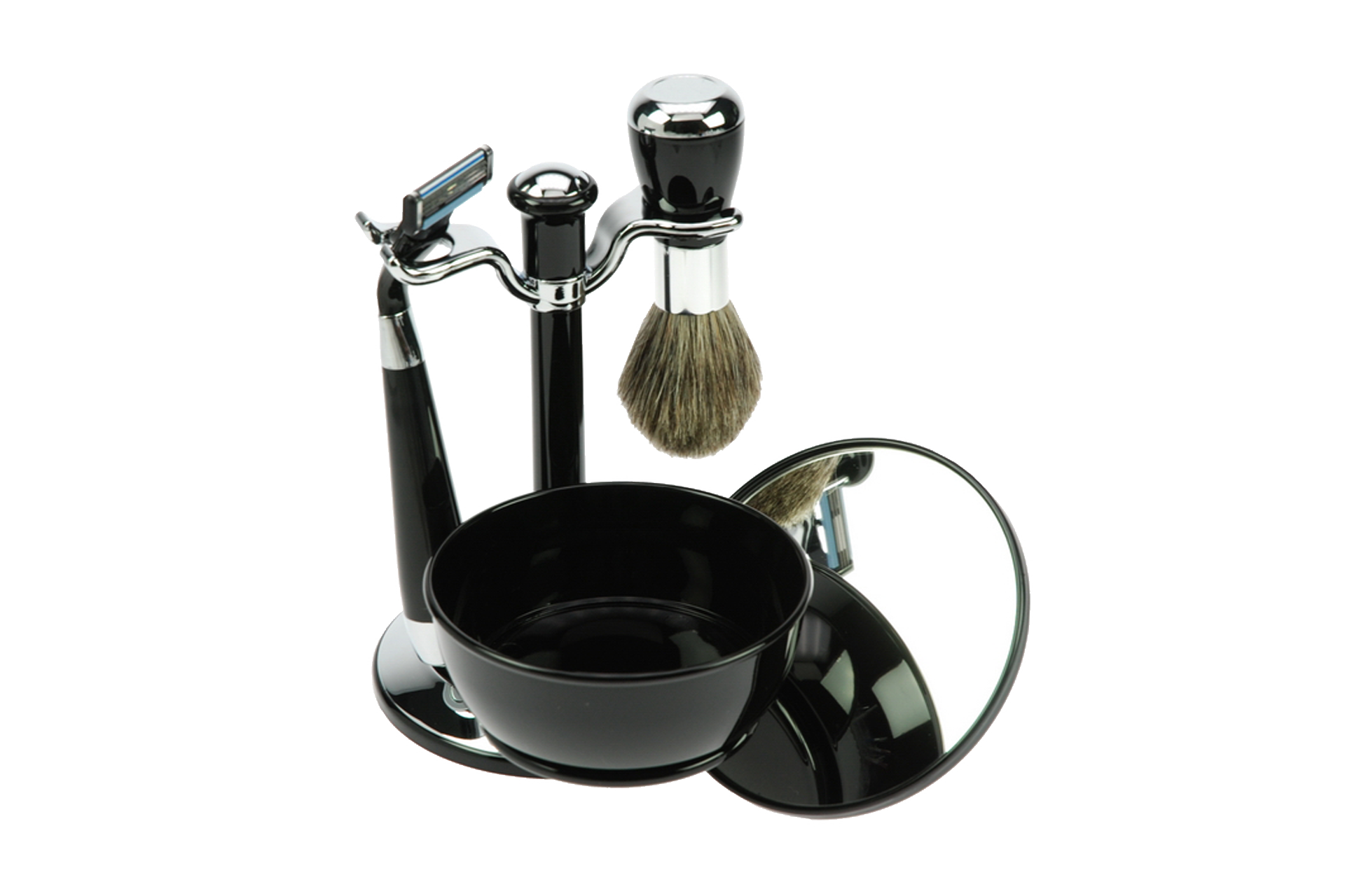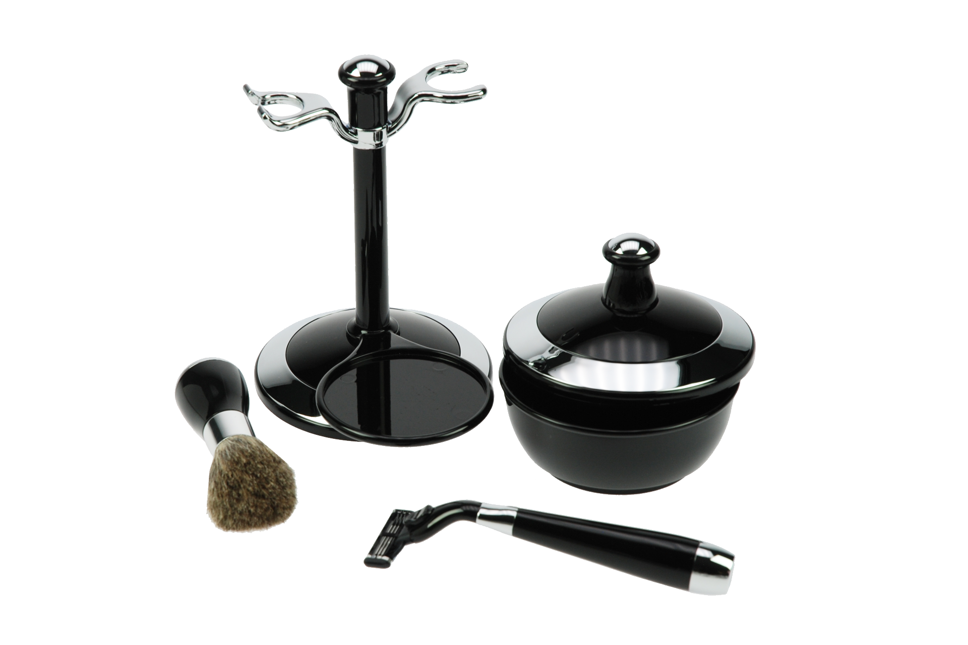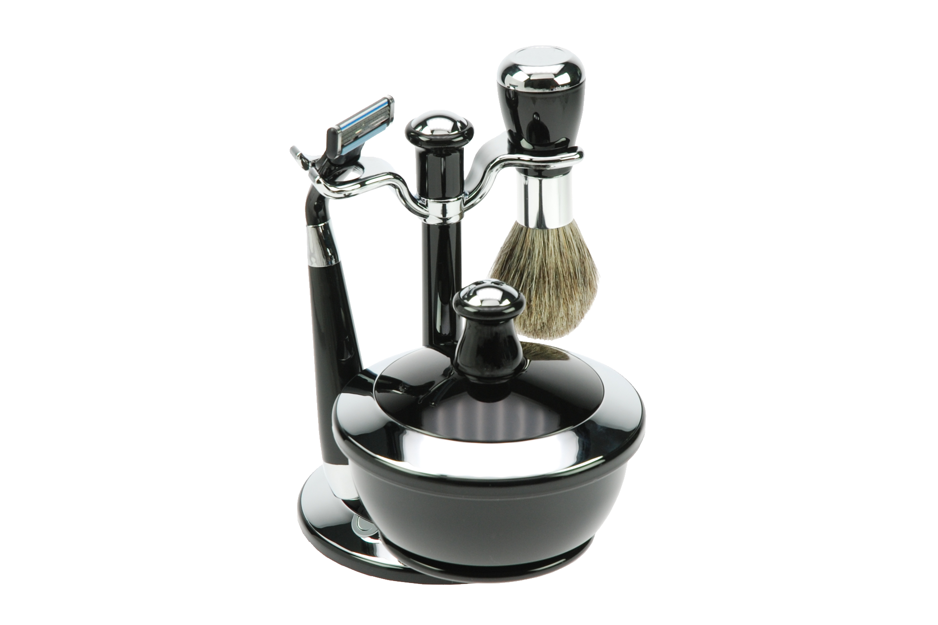 Shaving Set. Mach3, pure badger brush. Plastic, black/silver. With mug. Hight: 17cm